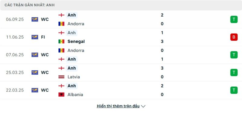Đội tuyển Anh đang thể hiện một sức mạnh tuyệt đối và cho thấy vị thế của một ứng cử viên hàng đầu. “Tam Sư” vững vàng trong top 5 thế giới và đang độc chiếm ngôi đầu bảng K với một thành tích toàn thắng ấn tượng sau 4 trận. Họ đã ghi được 8 bàn thắng và cũng chưa để thủng lưới lần nào, dễ dàng vượt qua các đối thủ như Albania 2-0, Latvia 3-0 và Andorra. Phong độ hủy diệt này cho thấy sự cân bằng đáng sợ giữa một hàng công bùng nổ và một hàng thủ chắc chắn.
