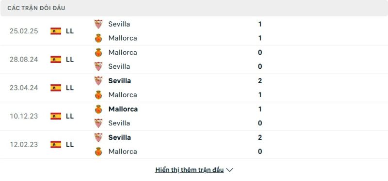 Thống kê phong độ gần đây Sevilla vs Mallorca