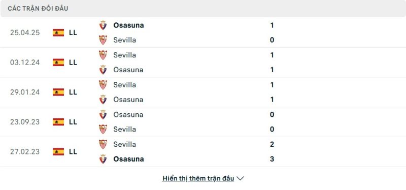 Thống kê phong độ gần đây Sevilla vs Osasuna