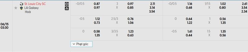 Bảng Tỷ lệ kèo bóng đá St.Louis City vs LA Galaxy
