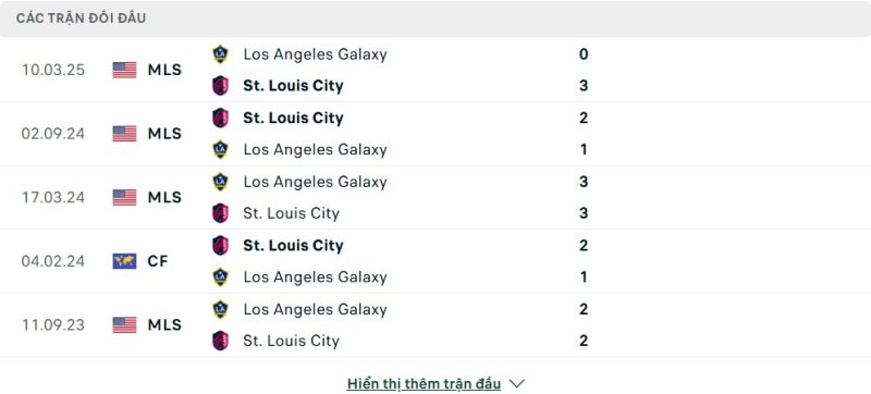 Thành tích đối đầu của St.Louis City vs LA Galaxy