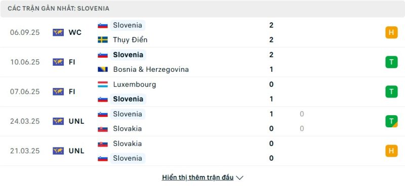 Thống kê phong độ gần đây Thụy Sĩ vs Slovenia