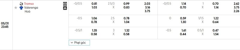 - Kèo châu Á Full Time: Tromsø IL -0.25