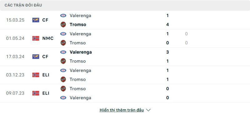 Thống kê phong độ gần đây Tromsø IL vs Vålerenga IF