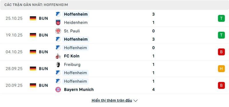 - Phong độ của TSG Hoffenheim