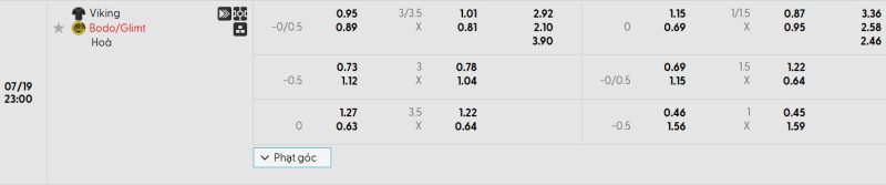 Bảng Tỷ lệ kèo bóng đá Viking vs Bodø/Glimt