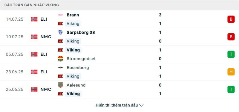 Thống kê phong độ gần đây Viking vs Bodø/Glimt