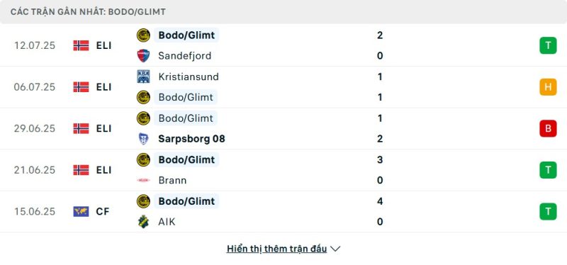 5 trận gần nhất của Bodø/Glimt: W-D-L-W-W
