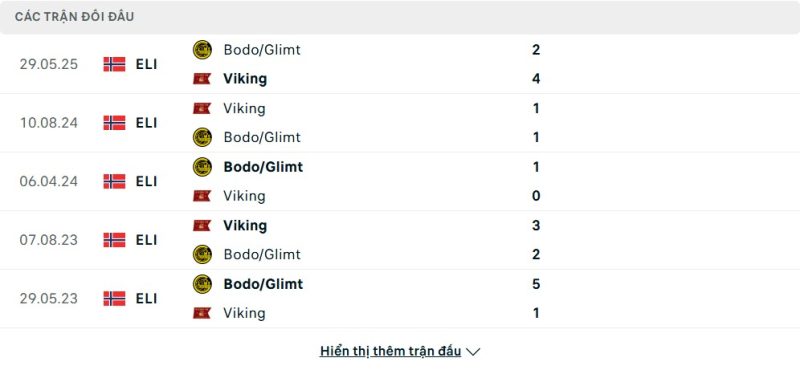 Thành tích đối đầu của Viking vs Bodø/Glimt