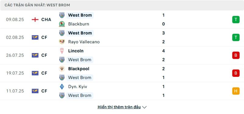Bên kia chiến tuyến, West Bromwich Albion vừa trải qua giai đoạn chuẩn bị mùa giải với nhiều kết quả trái chiều. Họ hòa Dynamo Kyiv 1-1, nhưng lại thua Blackpool và Lincoln trong các trận giao hữu. Dù vậy, West Brom vẫn cho thấy sức mạnh tấn công khi thắng Rayo Vallecano 3-2. Mùa giải Championship mở màn bằng chiến thắng quan trọng 1-0 trước Blackburn, dù phải chơi thiếu người. Sự tự tin đang trở lại với đoàn quân của HLV Carlos Corberán, và họ đặt mục tiêu tiếp tục giành 3 điểm ở vòng đấu này.