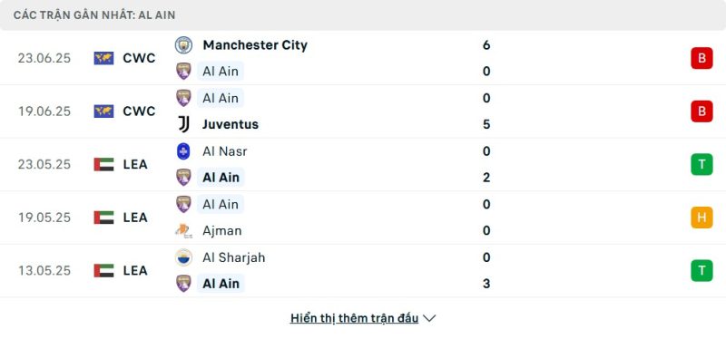 5 trận gần nhất của Al Ain: L-L-W-D-W