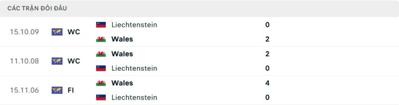 Thành tích đối đầu của Xứ Wales vs Liechtenstein